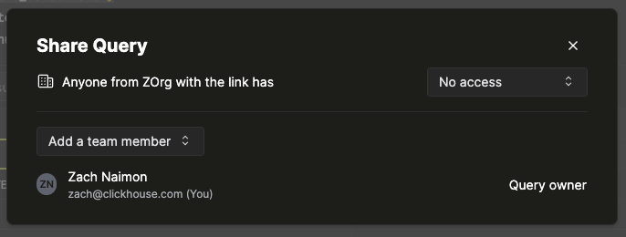 Чтобы настроить доступ к запросу для конкретных участников, выберите нужного участника команды из селектора "Добавить участника команды":