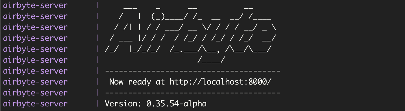 Как только вы увидите баннер Airbyte в вашем терминале, вы сможете подключиться к localhost:8000
