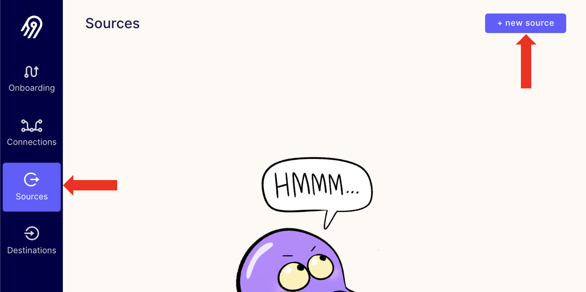 - Внутри Airbyte выберите страницу "Connections" и добавьте новое соединение.