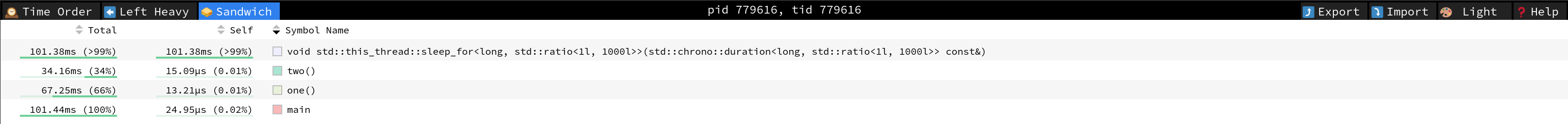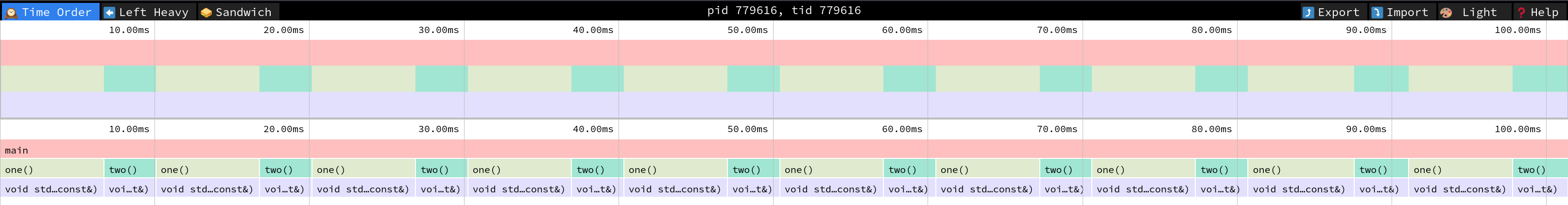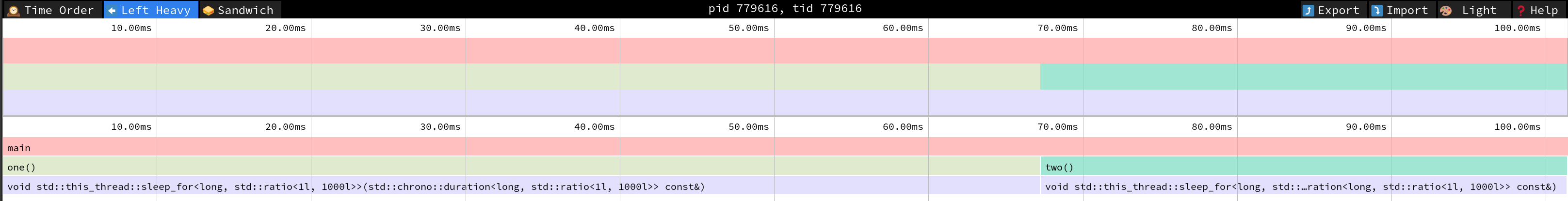 While Perfetto makes visualizing multiple threads and querying the data easier, speedscope is better generating a flamegraph and a sandwich view of your data.