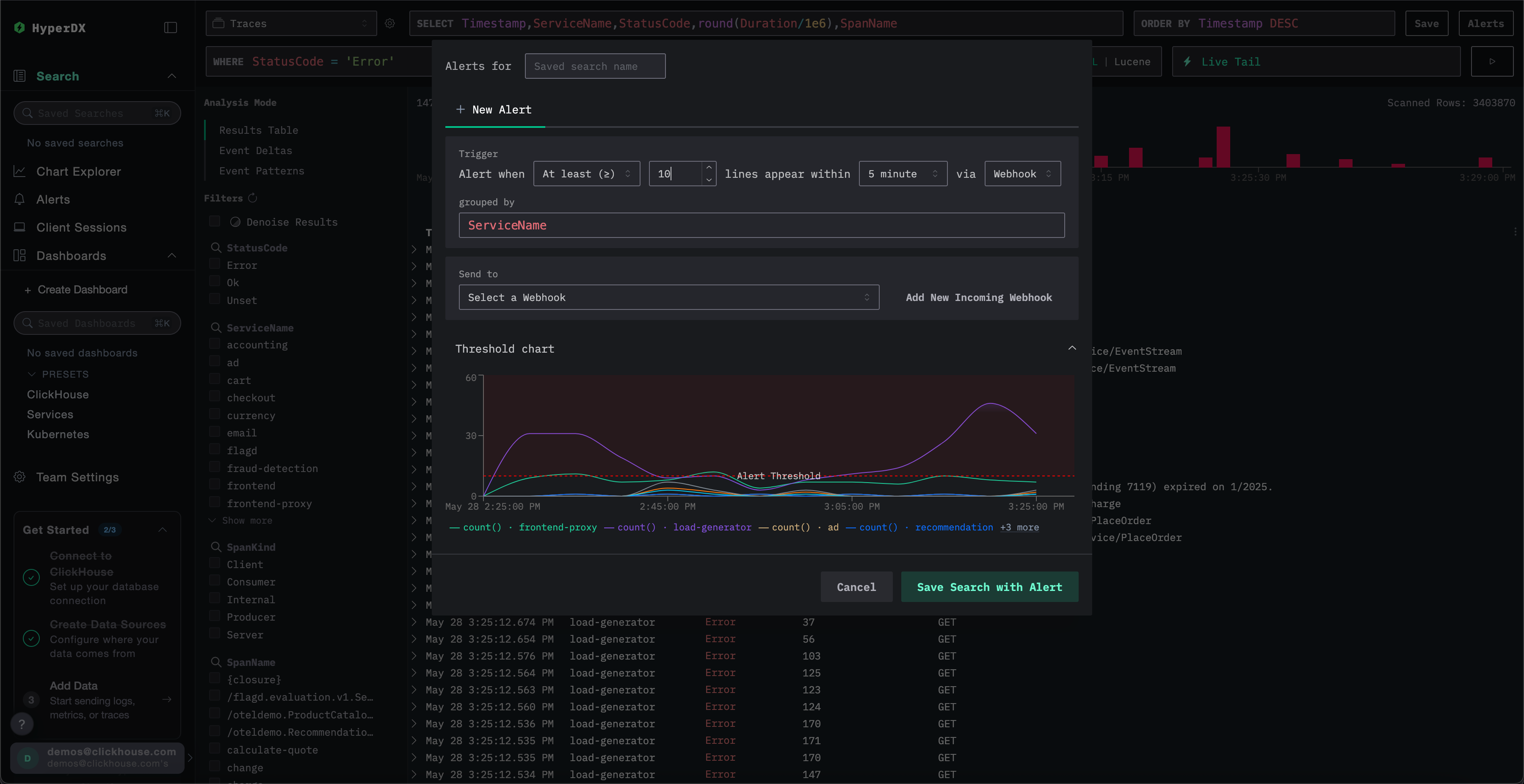Here are a few common alert scenarios that you can use HyperDX for: